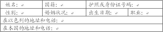 其他国家的公民需在当地以色列使馆或离驻地最近的领事馆的外交官或领事代表在场的情况下填写该表格。