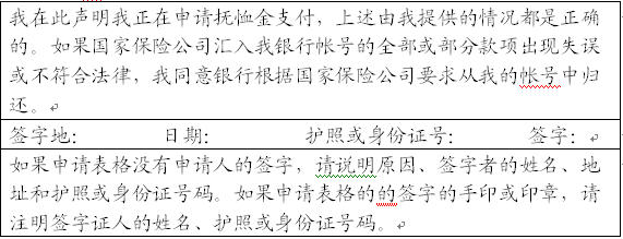 3,为使你的申请被受理,你必须在“医疗保密弃权书”上签字,并附在申请表上。